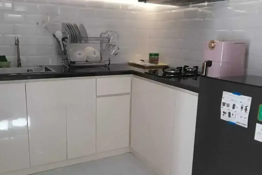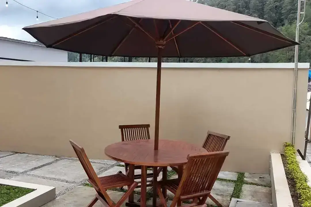 Villa 2 lantai terdiri 3 kamar tidur, 3 kamar mandi, ruang tamu, ruang makan, ruang santai, dapur, termasuk alat dapur, balcony di lantai 2 dengan pemandangan yang indah, Free Wifi, Free Netflix, tempat santai di depan Villa, kolam renang bersama, dan mushola